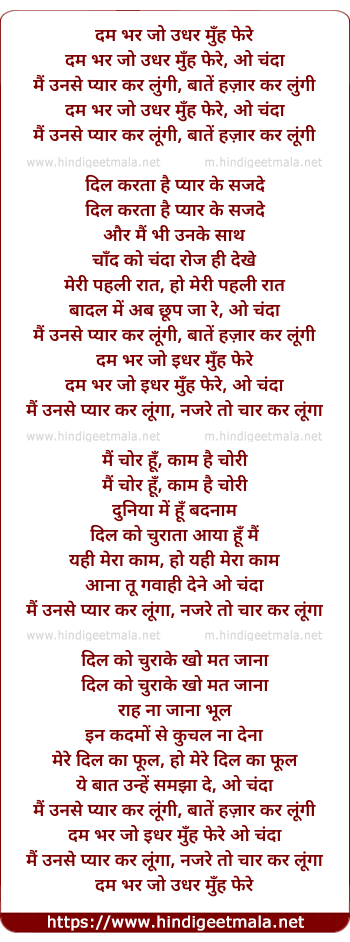 Lyrics of Dam Bhar Jo Udhar Munh Phere - दम भर जो उधर मुँह फेरे