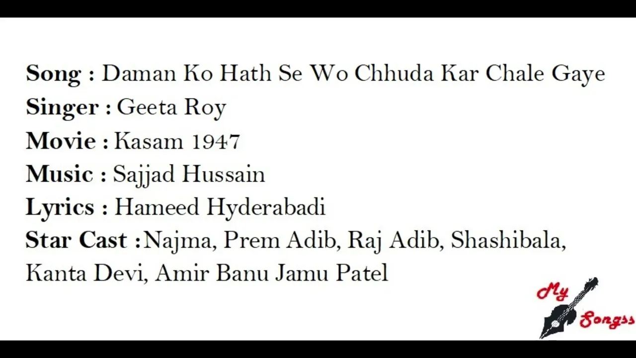 Lyrics of Daman Ko Hath Se Wo Chhuda Kar Chale Gaye - दामन को हाथ से वो छुड़ा कर चले गये