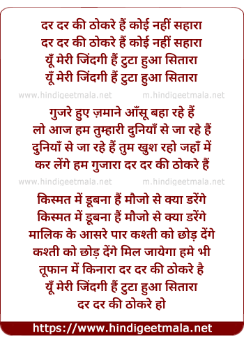 Lyrics of Dar Dar Ki Thokare Hai - दर दर की ठोकरे हैं