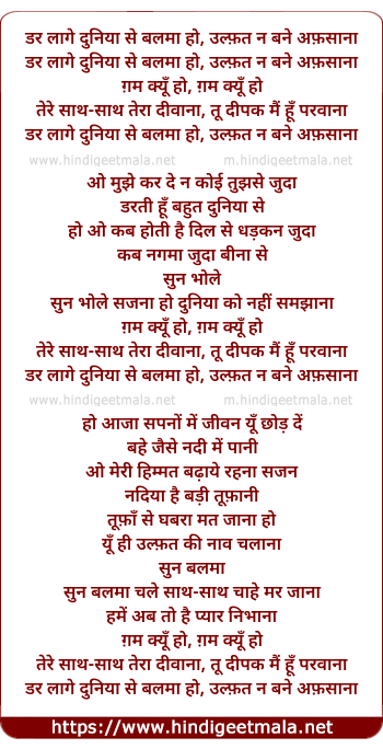 Lyrics of Dar Lage Duneeya Se Balma - डर लागे दुनिया से बलमा