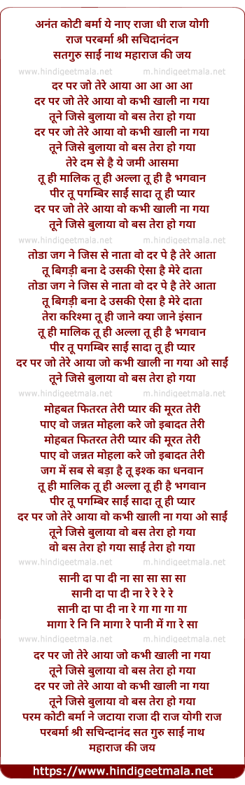 Lyrics of Dar Par Jo Tere Aayaa - दर पर जो तेरे आया