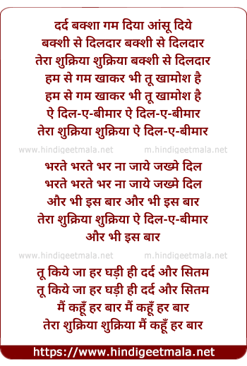 tera shukriya shukriya ae dil-e- bimar