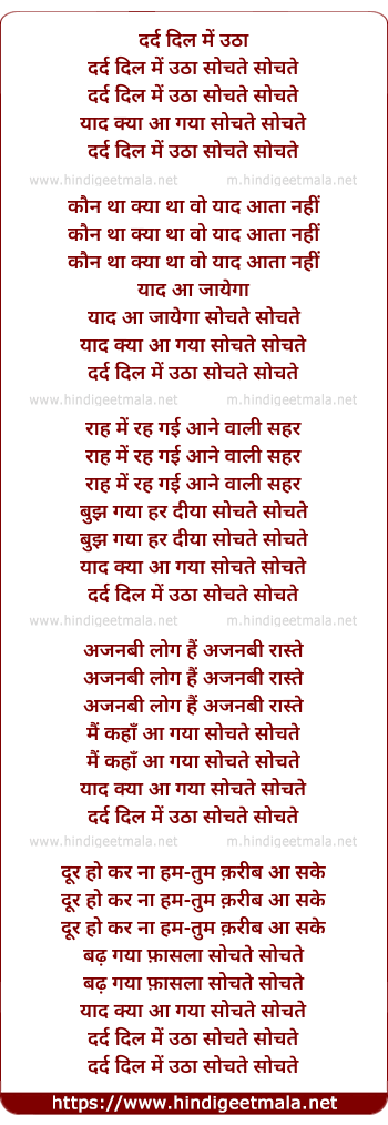 Lyrics of Dard Dil Mein Utha Sochate Sochate - दर्द दिल में उठा