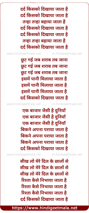 Lyrics of Dard Kisko - दर्द किसको दिखाया जाता है