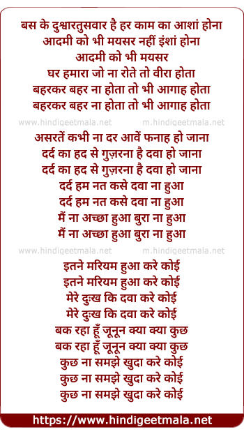 Lyrics of Dard Minnat Kashe Dawaa Na Hua - बस के दुश्वारतुसवार है हर काम का आशां होना