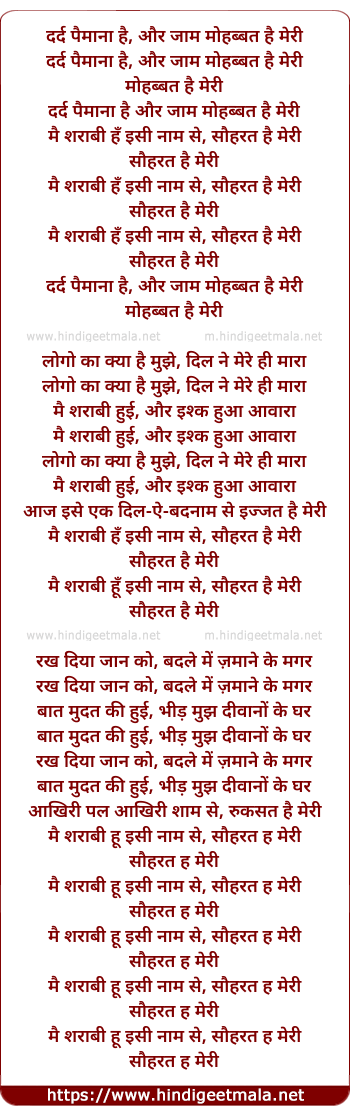 Lyrics of Dard Paimana Hai - दर्द पैमाना है, और जाम मोहब्बत है मेरी