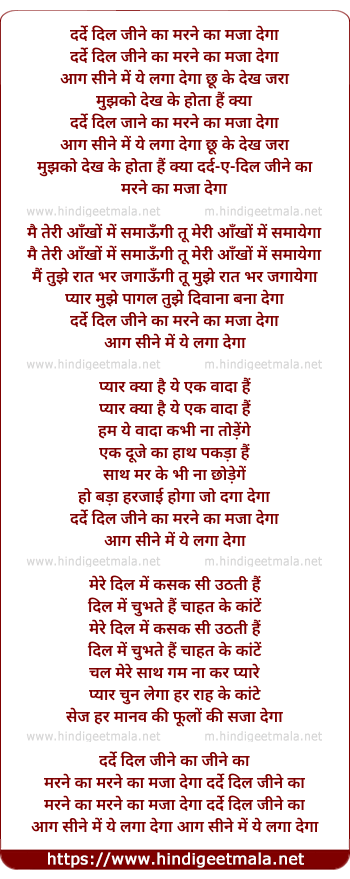 Lyrics of Darde Dil Jine Ka Marne Ka Maja Dega - दर्दे दिल जीने का मरने का मजा देगा