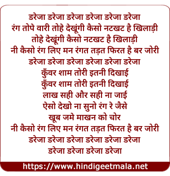 Lyrics of Dareja Dareja - डरेजा डरेजा