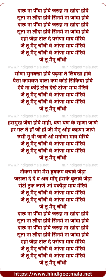 Poetic Translation - Lyrics of Daru Na Pinda Hove - दारू ना पींदा होवे जरदा ना खांदा होवे