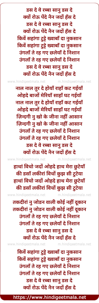 Lyrics of Das De Ve Rabba - डस दे वे रब्बा