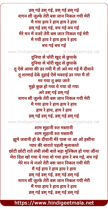 Lyrics of Das Gayi Nagin Si Zulf - डस गई नागन सी जुल्फे