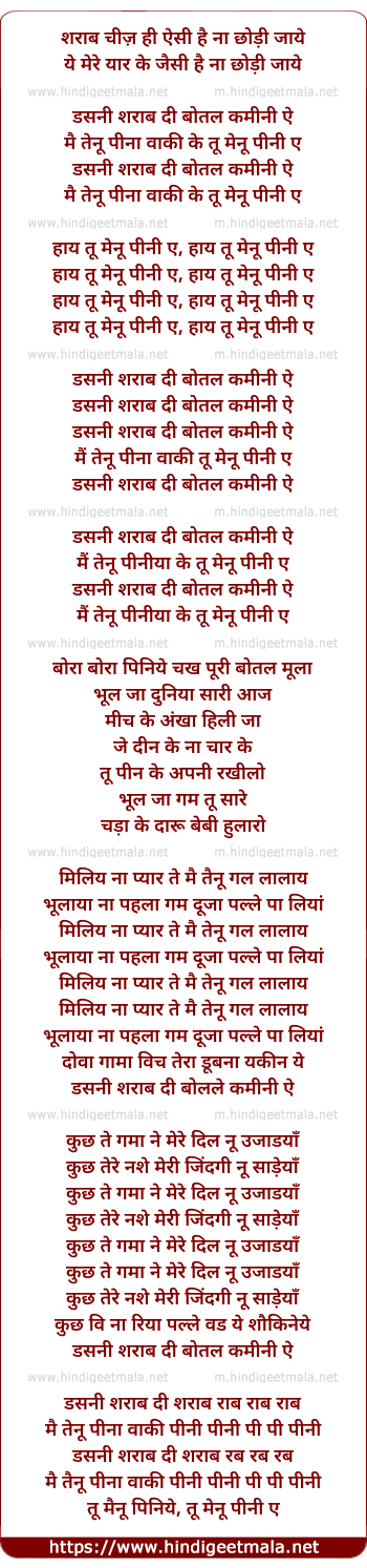 Lyrics of Dasni Sharab Dii - दस्नी शराब दी
