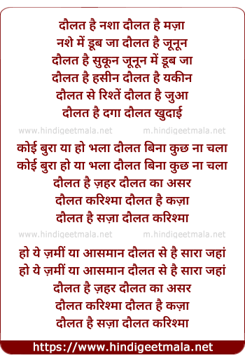 Lyrics of Daulat Hai Nasha Daulat Hai Maza - दौलत है नशा दौलत है मजा