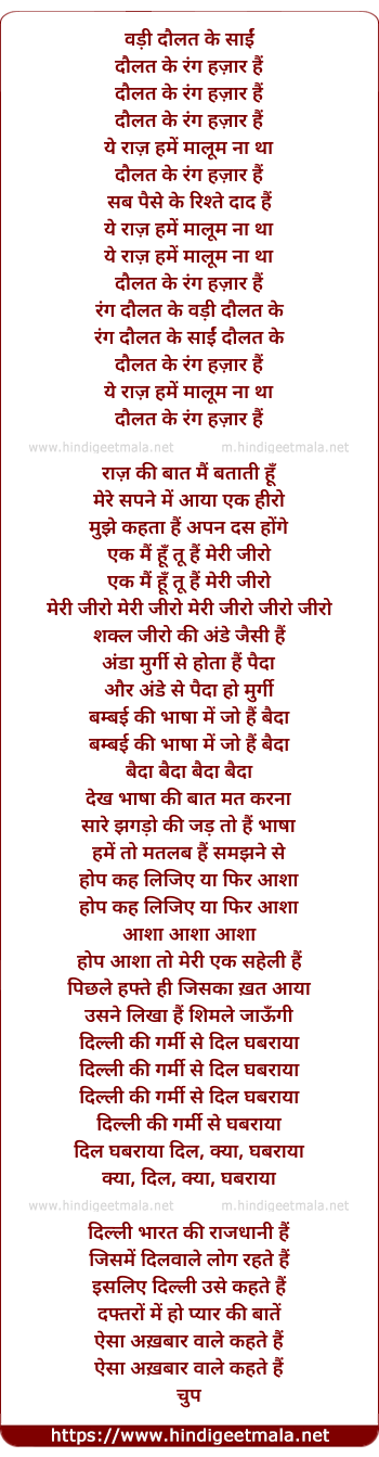 Lyrics of Daulut Ke Rang Hazaar Hai - दौलत के रंग हज़ार हैं