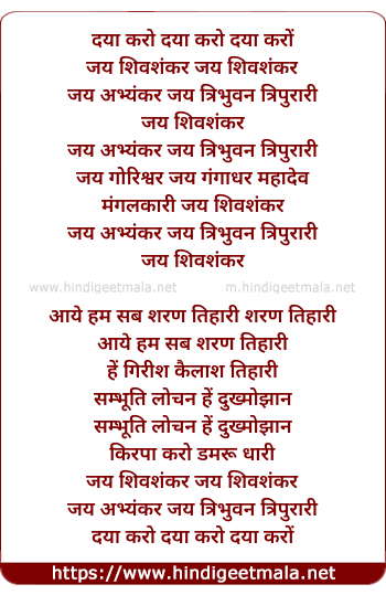 Lyrics of Daya Karo Jai Shivshankar - दया करो जय शिवशंकर