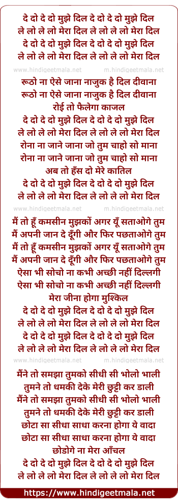 Lyrics of De Do De Do Mujhe Dil - दे दो दे दो मुझे दिल