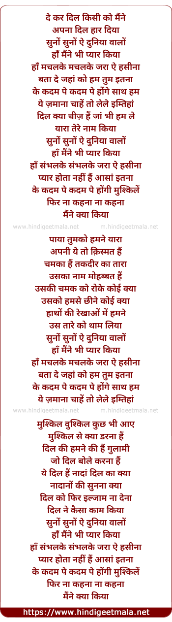 de kar dil kisi ko maine