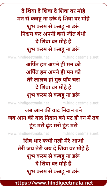 Lyrics of De Shiva Bar Mohe - दे शिवा वर मोहे