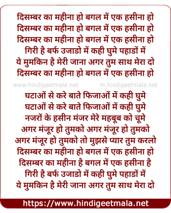 Lyrics of December Ka Mahina - दिसम्बर का महीना