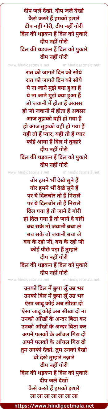 Lyrics of Deep Jale Dekhoo - दीप जले देखो