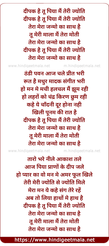 Lyrics of Deepak Hai Tu Piya Mai Teri Jyoti - दीपक है तू पिया मैं तेरी ज्योति