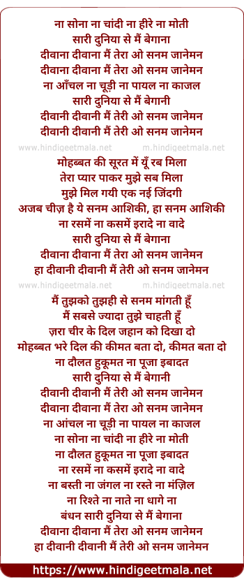 Lyrics of Deewaana Deewaana Main Tera O Sanam Jaanemann - दीवाना दीवाना मैं तेरा ओ सनम जानेमन