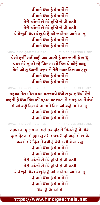 Lyrics of Diwane Kya Hai Paimano Me - दीवाने क्या है पैमानों में
