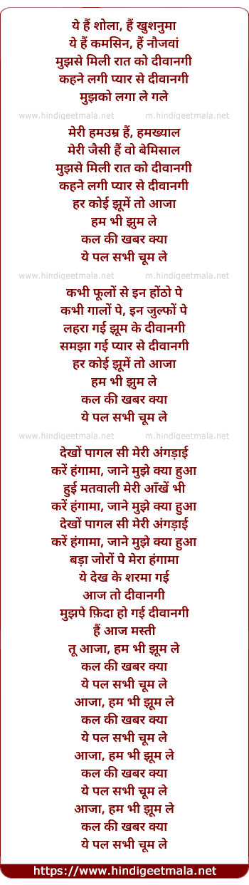 Lyrics of Deewangi (Suneeta Rao) - ये हैं शोला, हैं खुशनुमा