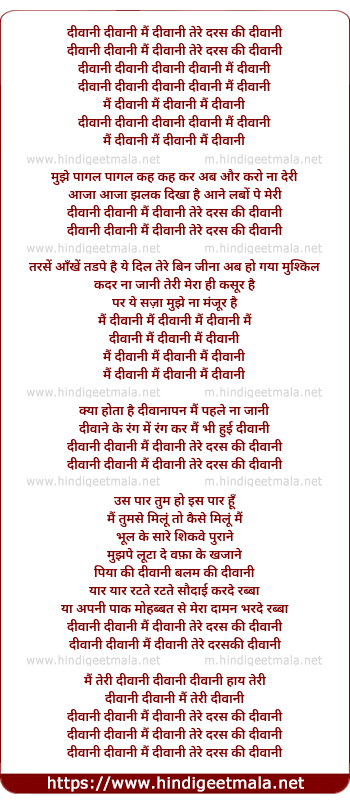 Lyrics of Deewani Deewani Mai Deewani - दीवानी दीवानी मैं दीवानी