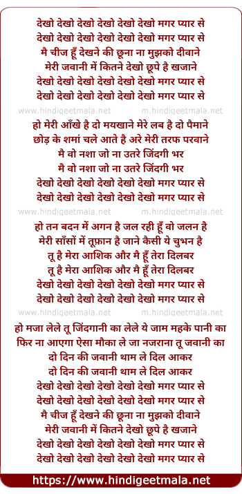 Lyrics of Dekho Dekho Dekho Magar Pyar Se - देखो देखो देखो मगर प्यार से