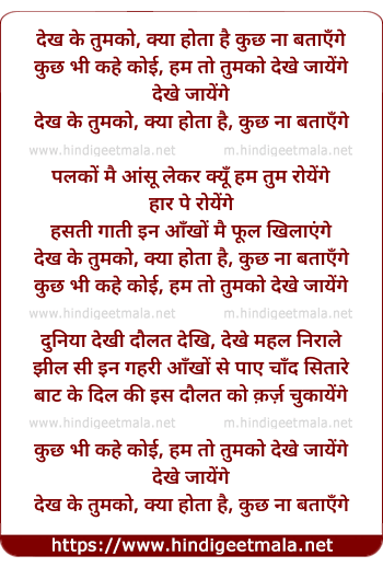 Lyrics of Dekh Ke Tumko Kya Hota Hai - देख के तुमको क्या होता है