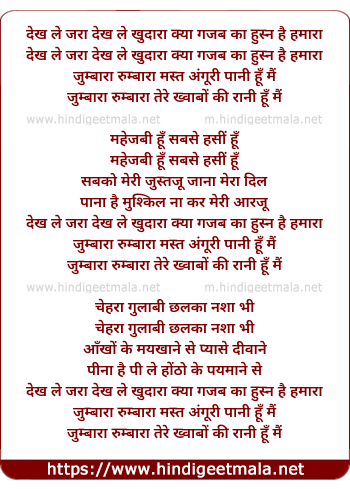 Lyrics of Dekh Le Zara Dekh Le Khudara - देख ले जरा देख ले खुदारा
