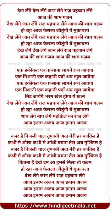 Lyrics of Dekh Lenge Jaan Lenge - देख लेंगे जान लेंगे