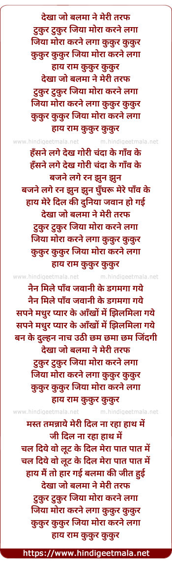Lyrics of Dekha Jo Balam Ne Meri Taraf - देखा जो बलम ने मेरी तरफ