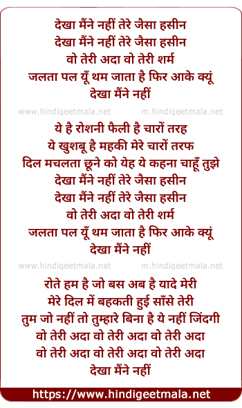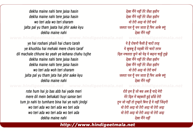 Lyrics of Dekha Maine Nahin Tere Jaisa Hasin - देखा मैंने नहीं तेरे जैसा हसीन