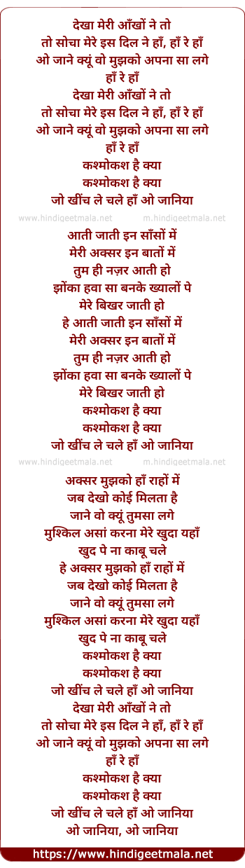 Lyrics of Dekha Meri Aankhon Ne Toh - देखा मेरी आँखों ने तो