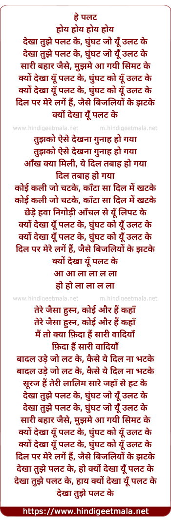 Lyrics of Dekha Tujhe Palat Ke - देखा तुझे पलट के