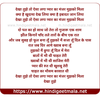 dekha tujhe to aisa laga pyar ka manjar mujhko mila