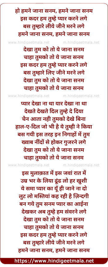 ho hamane jaana sanam, hamane jaana sanam