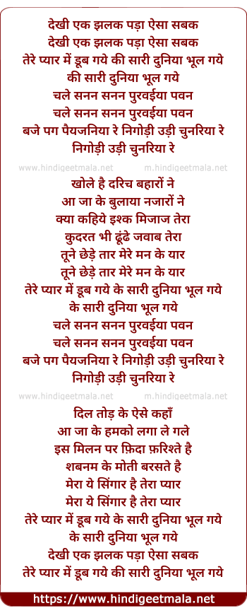 Lyrics of Dekhi Ek Jhalak - देखी एक झलक पड़ा ऐसा सबक