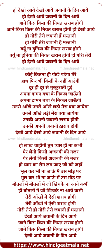 Lyrics of Dekho Aaye Jawani Ke Din - देखो आये जवानी के दिन