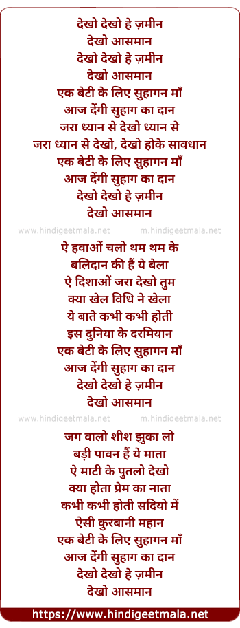 Lyrics of Dekho Dekho He Zameen Dekho Aasmaan - देखो देखो हे ज़मीन देखो आसमान