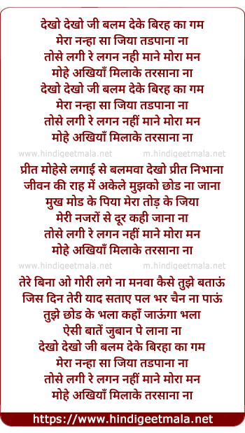 Lyrics of Dekho Dekho Ji Balam Deke Birha Ka Gam - देखो देखो जी बलम देके बिरह का गम