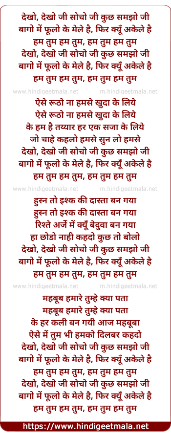 Lyrics of Dekho, Dekho Ji, Socho Ji Kuchh Samjho Ji - देखो, देखो जी सोचो जी कुछ समझो जी