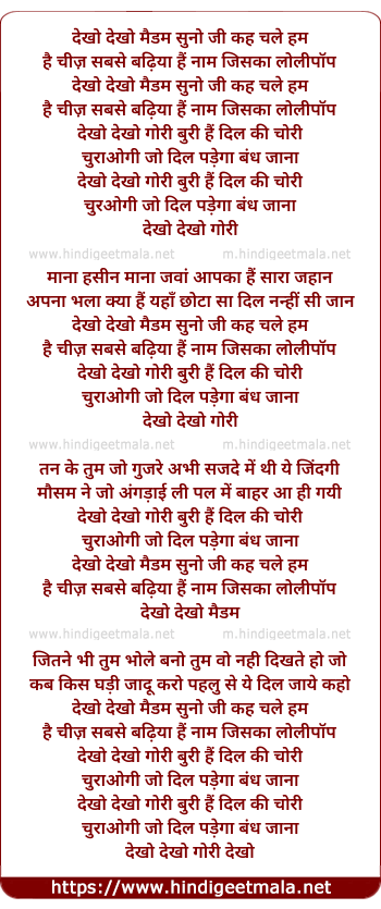 Lyrics of Dekho Dekho Madam Suno Jo Keh Chale Hum - देखो देखो मैडम सुनो जो कह चले हम