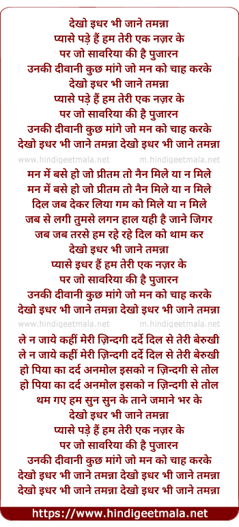 Lyrics of Dekho Idhar Bhi Jane Tammana Pyase Pade Hai Hum - देखो इधर भी जाने तमन्ना प्यासे पड़े हैं हम