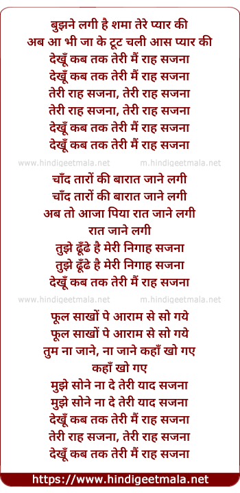 Lyrics of Dekhu Kab Tak Teri Main Rah Sajna - देखूँ कब तक तेरी मैं राह सजना