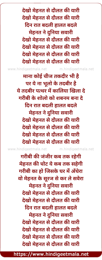 Lyrics of Dekho Mehnat Se Daulat Ki Yaari - देखो मेहनत से दौलत की यारी
