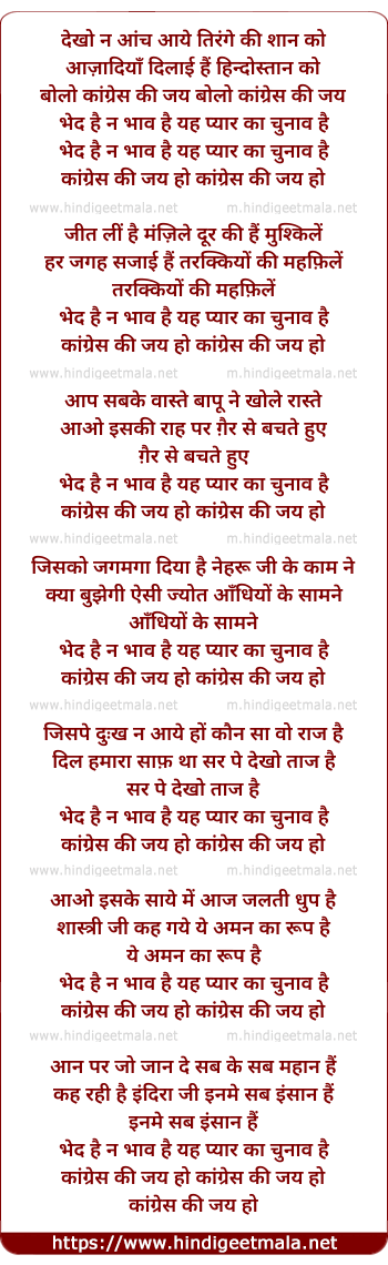 Lyrics of Dekho Na Aanch Aaye Tirange Ko - देखो न आंच आये तिरंगे को