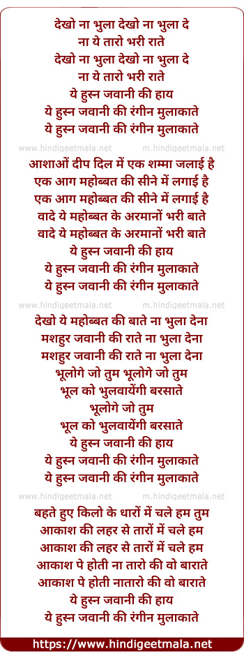 Lyrics of Dekho Na Bhula Dena - देखो ना भुला देना